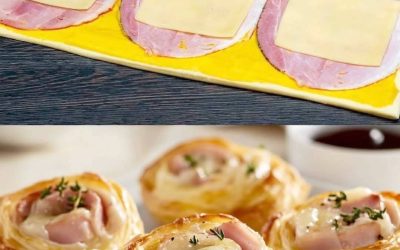 Bladerdeegrolletjes gevuld met kaas en ham – een eenvoudig en heerlijk recept!