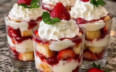 Aardbeien cakejes in cupcakevormpjes Dit dessert zal iedereen doen geloven dat je het zelf hebt gemaakt. Verse aardbeien, zelfgemaakte slagroom…