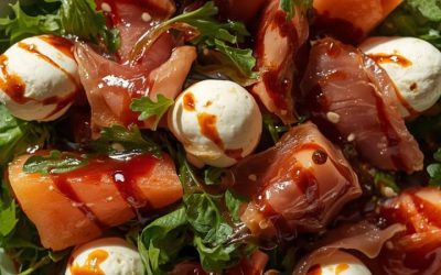Rucolasalade met meloen, ham en mozzarella met balsamicodressing Op zoek naar een frisse, lichte maar toch smaakvolle salade die het…