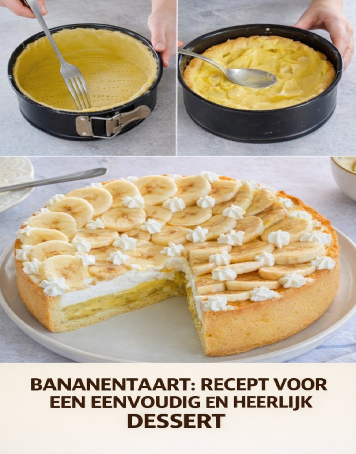 Deze bananencake is een echte blikvanger: een knapperige bodem, een romige vulling en frisse banaan zorgen samen voor een perfecte balans. Ideaal als dessert of bij een gezellige kop thee.