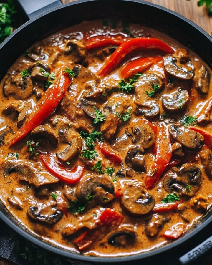 Er gaat niets boven de vertrouwde geur van huisgemaakte gerechten die de keuken vult op een gure dag. Dit gerecht is daar het levende bewijs van: een rijke mix van geroosterde tomatenpuree, twee soorten paprika, pittige worcestersaus en romige roomkaas, omringd door sappige rundvleesreepjes en uitgebakken groenten zoals ui en champignon. Het resultaat? Een hartverwarmende maaltijd vol diepte en karakter die je keer op keer doet terugkeren naar de pan.