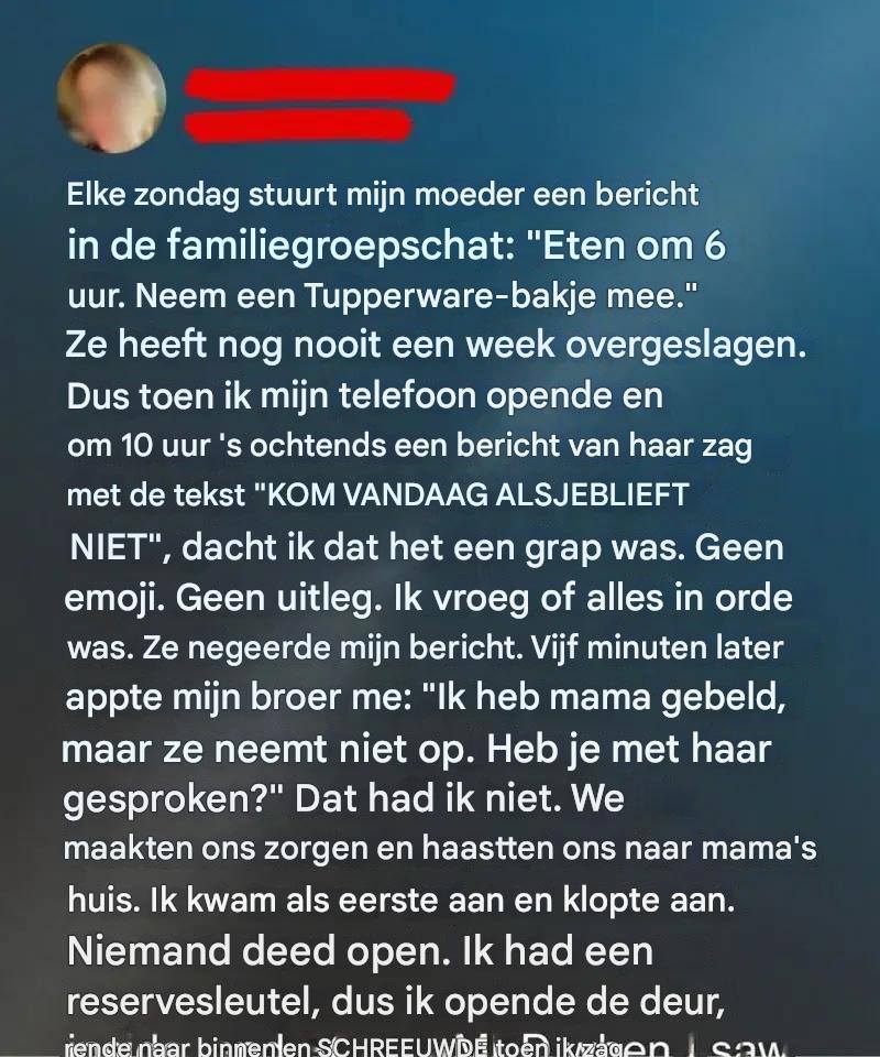 Op een zondagmiddag stuurde mijn moeder plots een bericht:
