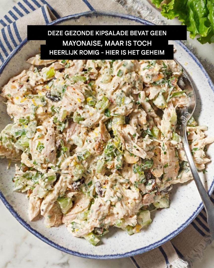 Romig en vol verse smaken: deze gezonde kipsalade zonder mayonaise bevat minder calorieën en vet, maar niet minder smaak.
