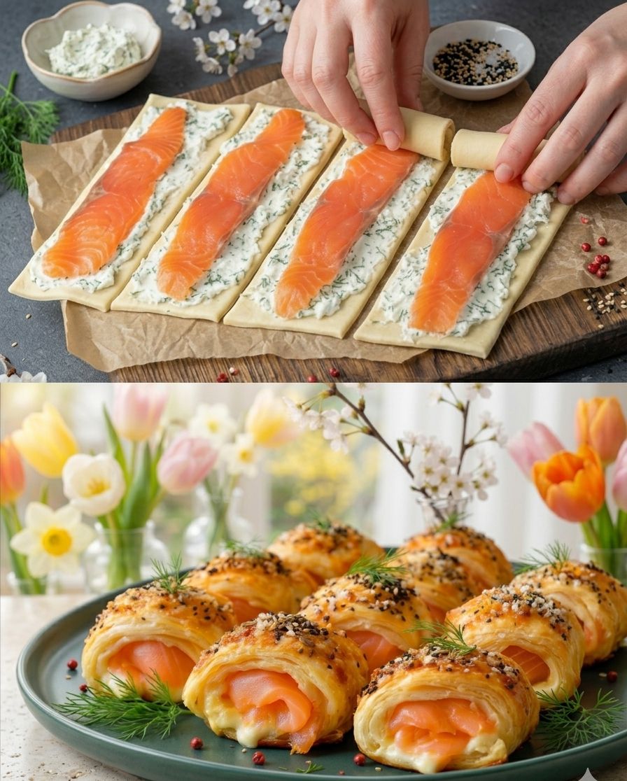 Precies daarom zijn bladerdeegrolletjes met gerookte zalm en roomkaas zo’n succesnummer. Ze combineren alles wat je zoekt in een goed hapje: knapperig, romig, hartig en nét een tikje luxe. Of je ze nu maakt voor een verjaardag, een feestje of gewoon een gezellige avond thuis, ze verdwijnen vaak sneller van tafel dan je lief is.